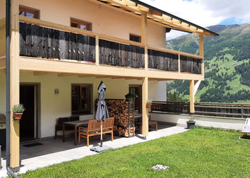 Draußen erwartet dich eine große Terrasse mit direktem Zugang zum Garten und einem atemberaubenden Blick auf die umliegenden Berge - ideal für entspannte Stunden im Freien.